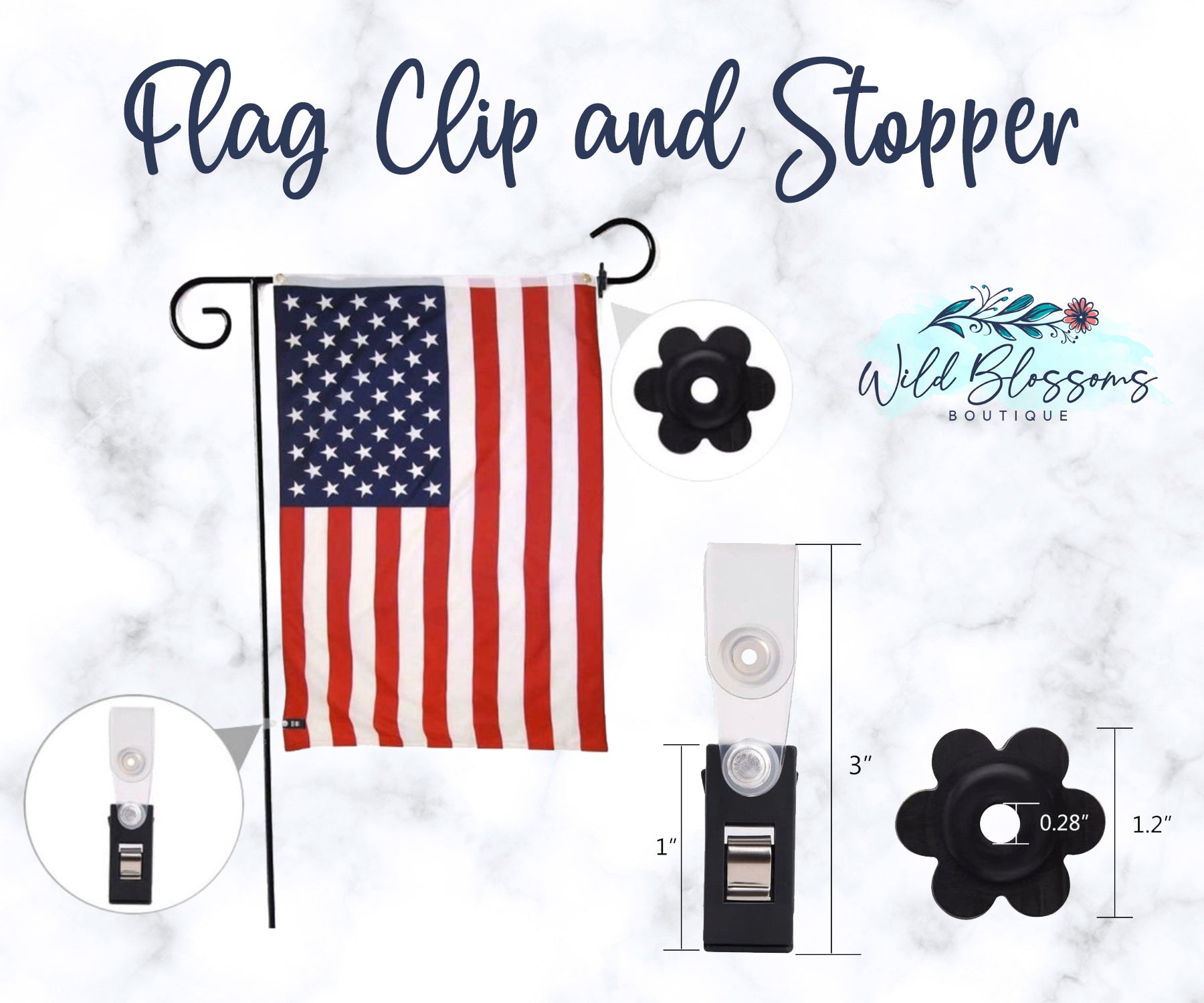 ❤ Keep your flag from flying away by adding a flag stopper and clip for an additional $3.00.