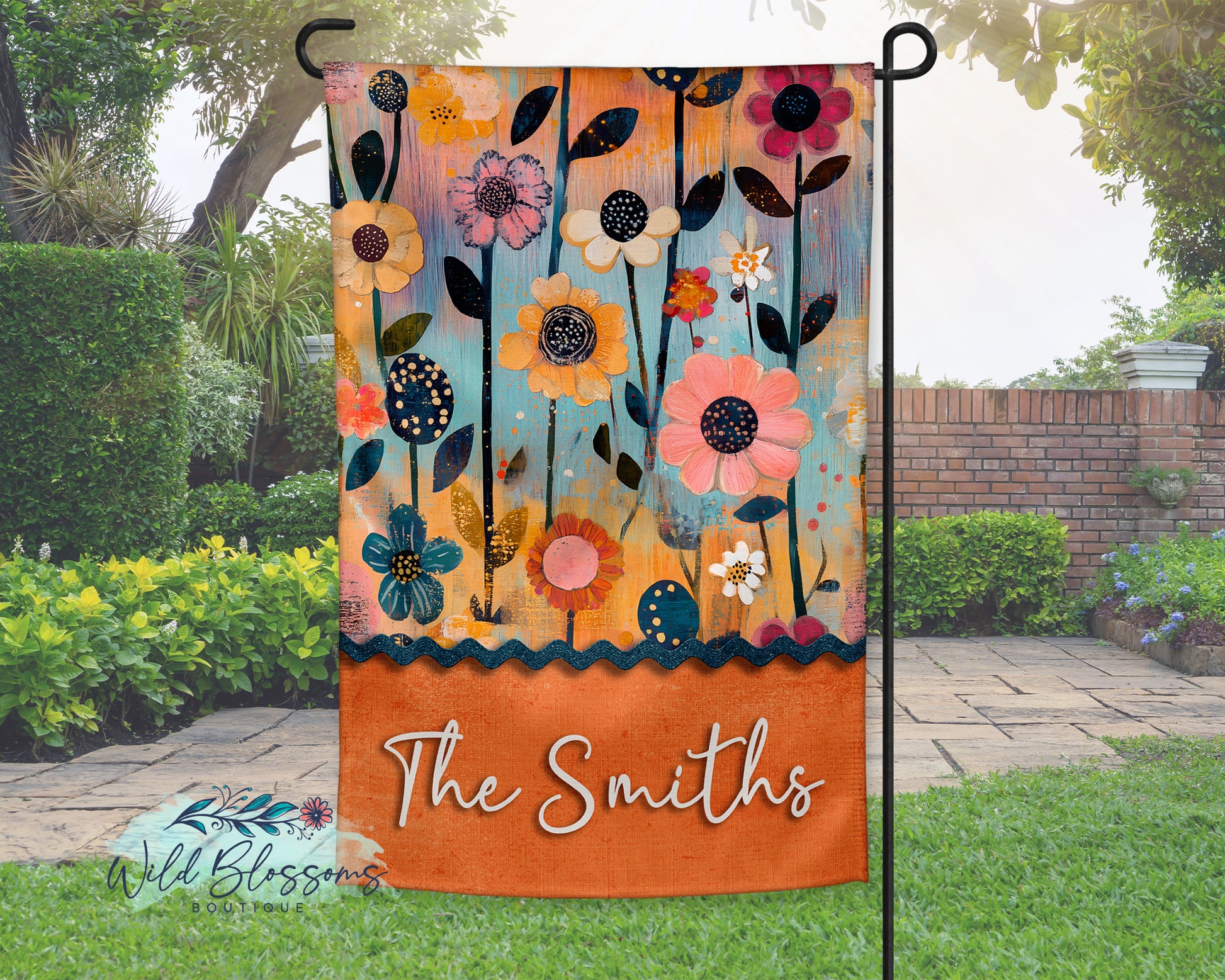 Illuminate your outdoor space with this vibrant painted floral garden flag that celebrates nature's most beautiful blooms. The bold, eye-catching design brings energy and color to any garden, porch, or entryway, making an instant impression on all who pass by. Add your personal touch by customizing it with your name, initials, or a meaningful phrase that tells your story. Engineered for durability against the elements, this flag retains its brilliant painted colors through rain and shine, serving as a stunning focal point that showcases your unique style and love of gardening year-round.