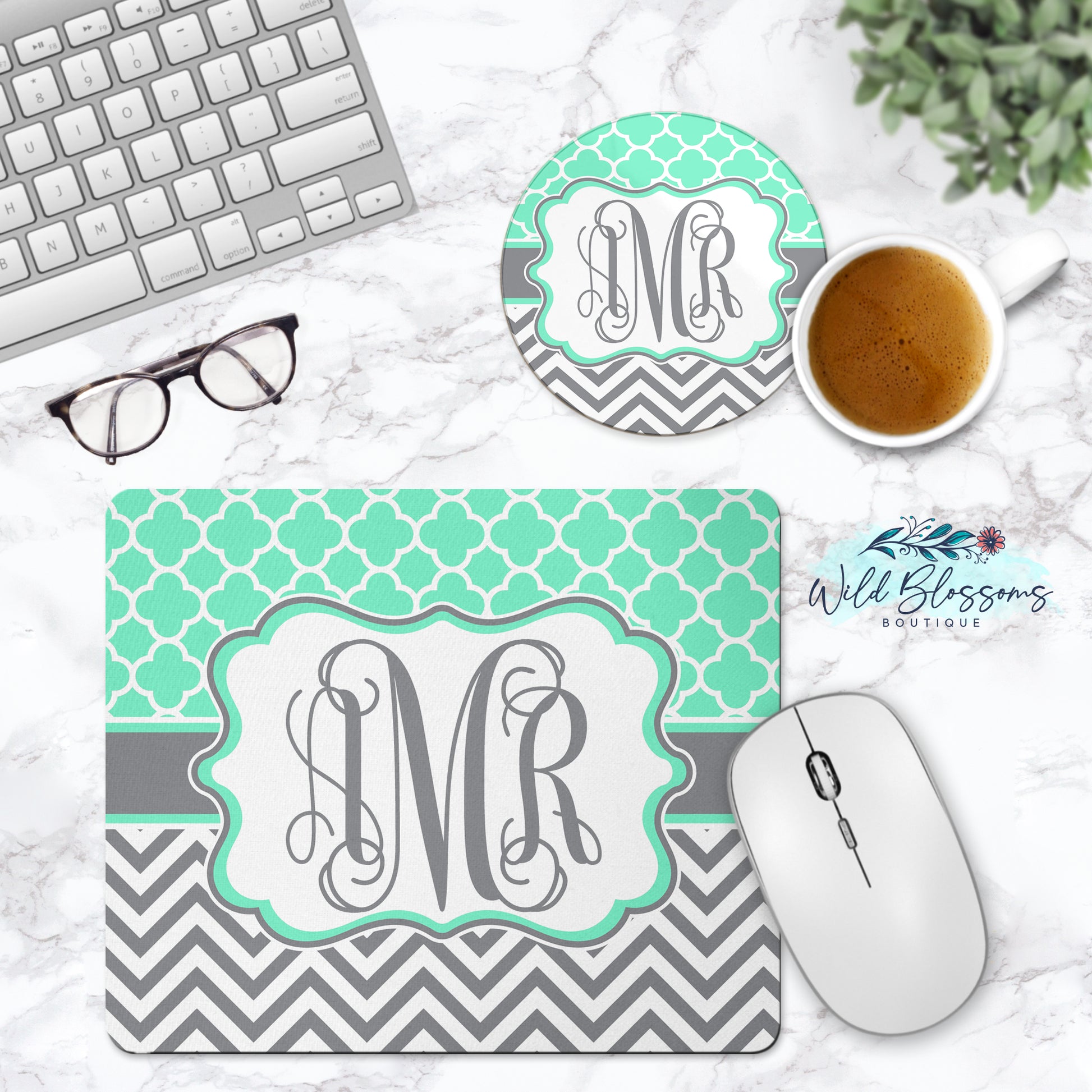 - Matching desk set can be found here: Mint And Grey Monogram Desk Set