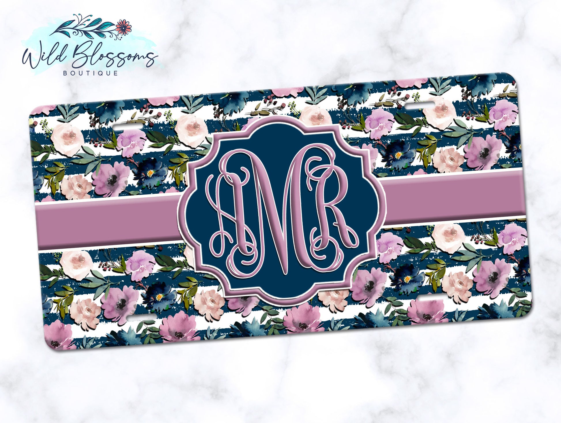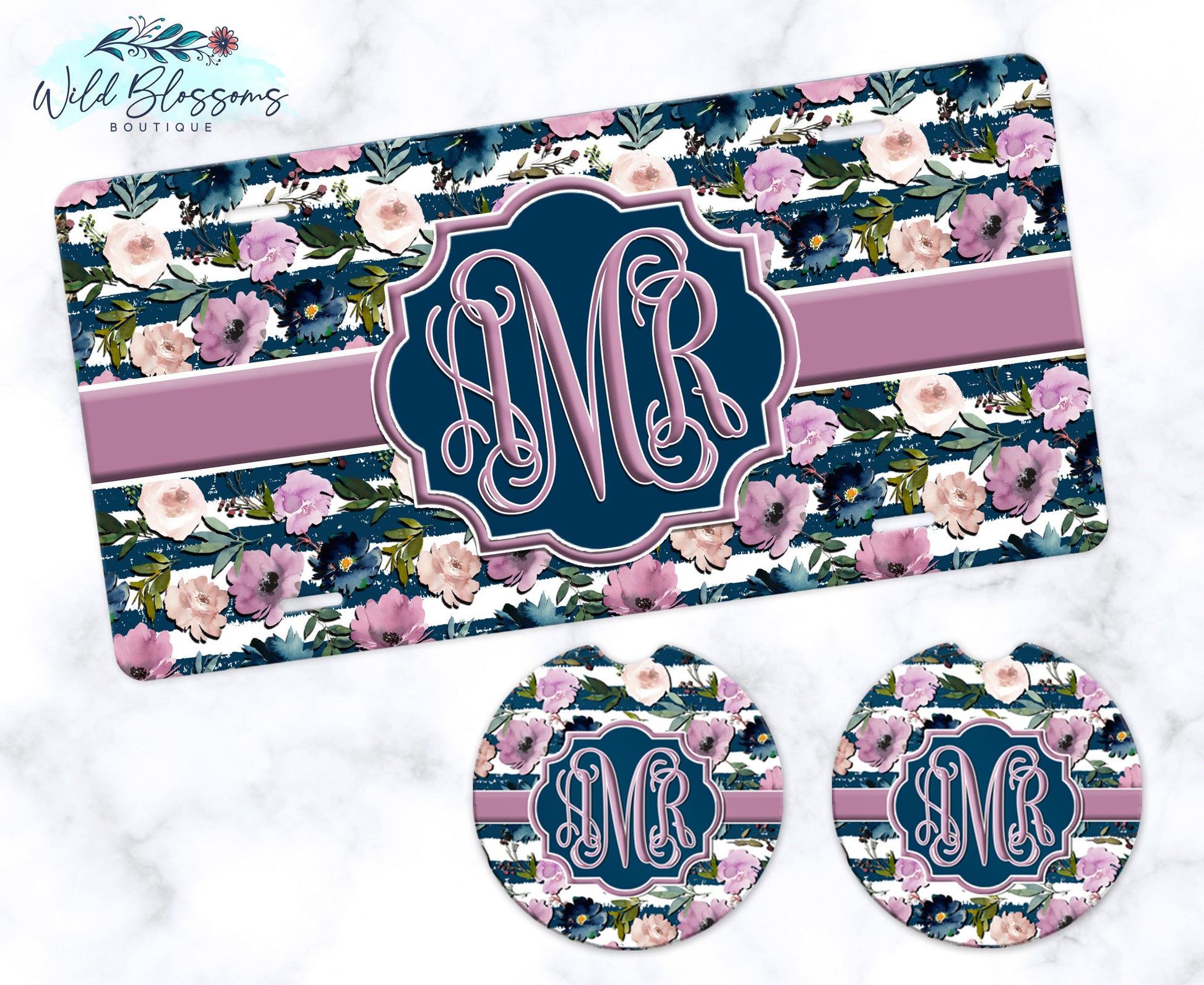 Add a touch of style to your car with our Navy And Mauve Floral License Plate. Match it with our matching set of two car coasters for a complete look. Stand out on the road with this elegant floral design.