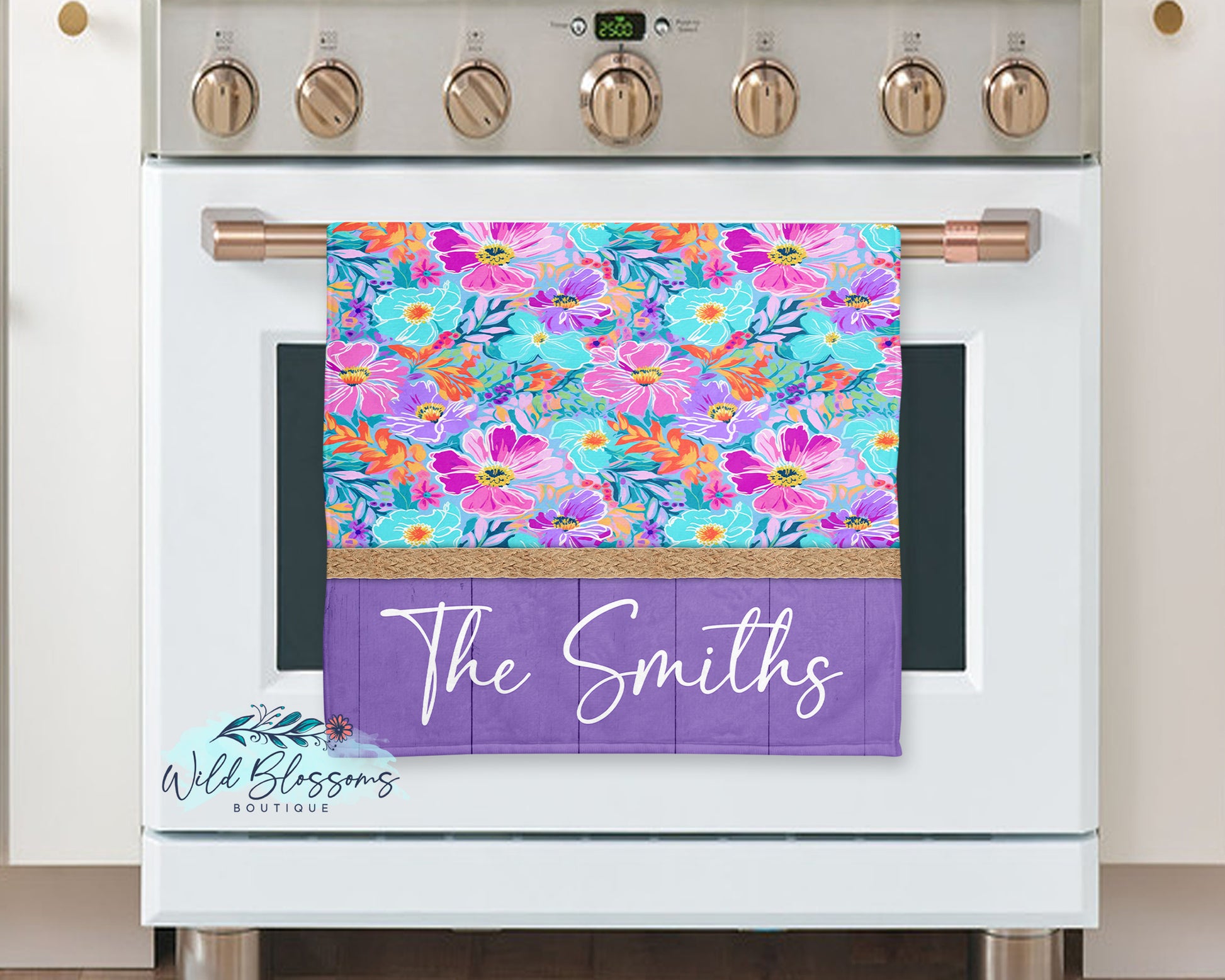 Purple Wooden Hibiscus Floral Personalized Kitchen Towel