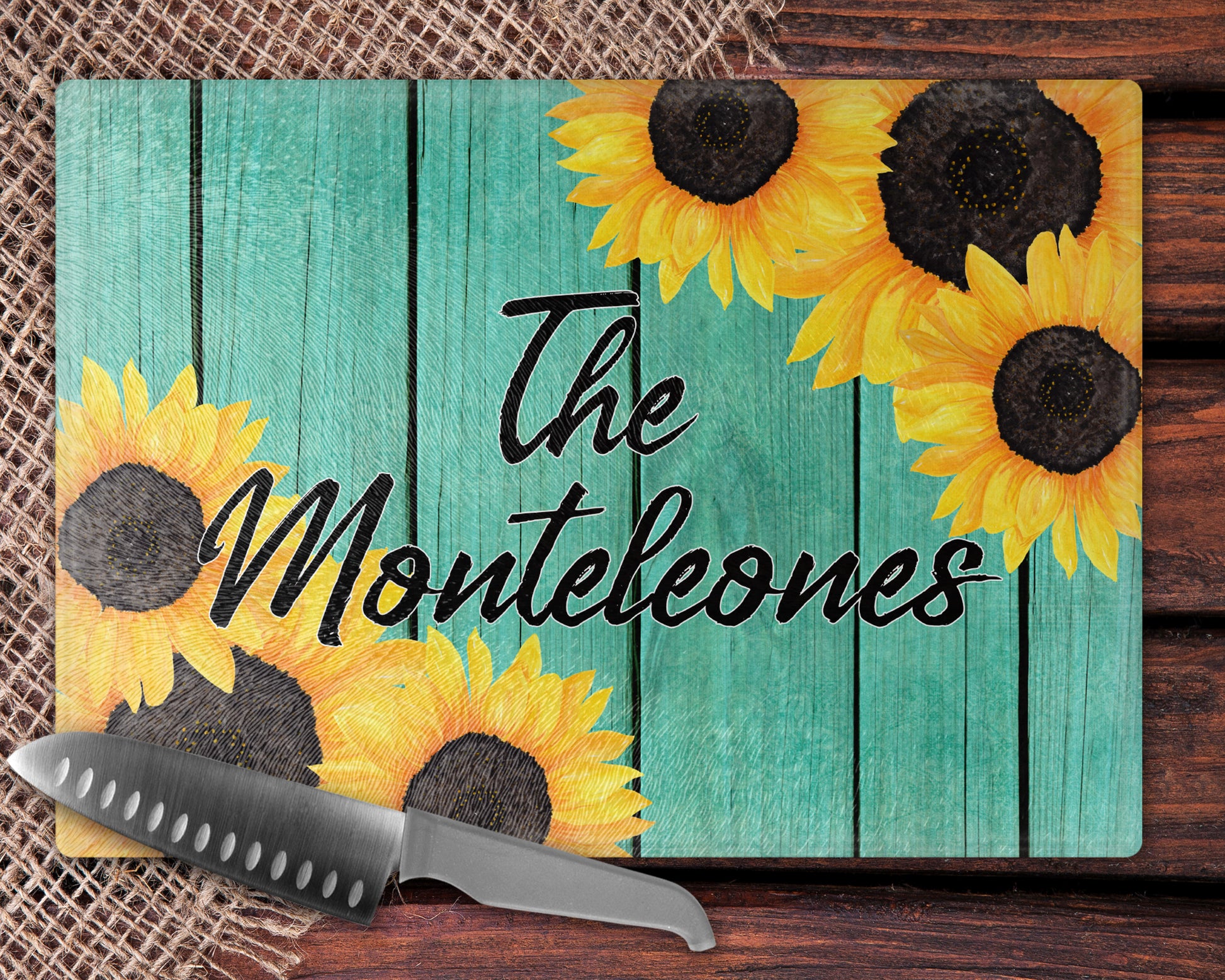 Teal Wooden Sunflower Kitchen Towel