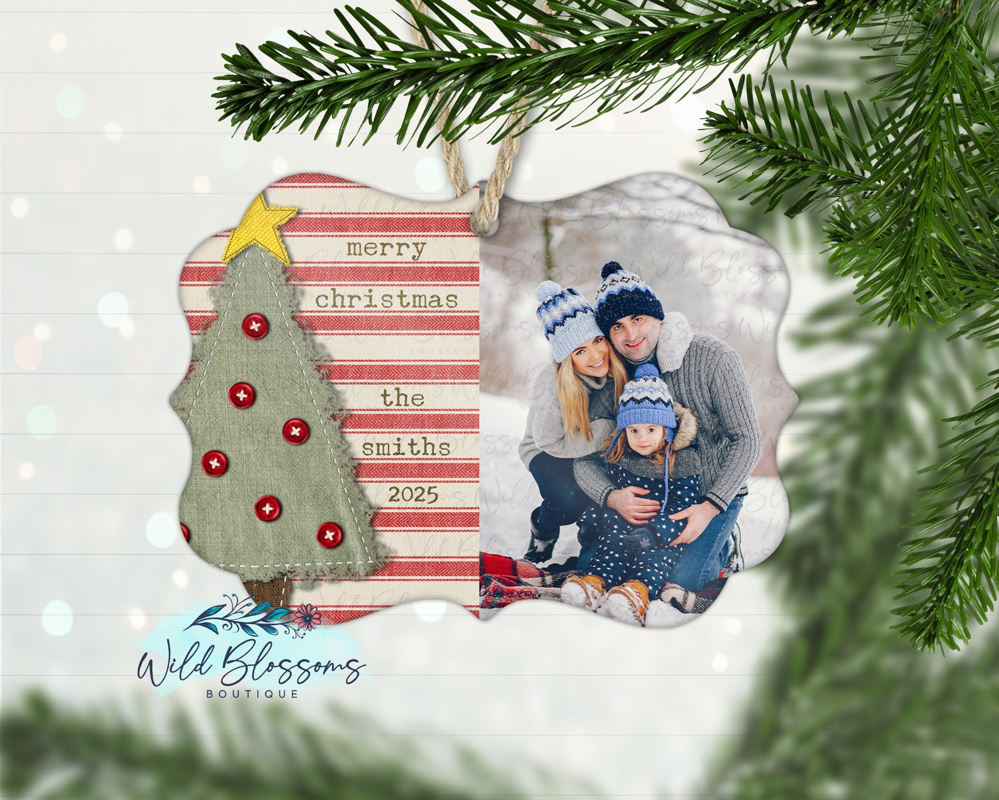 Ticking Fabric Christmas Tree Personalized Photo Ornament