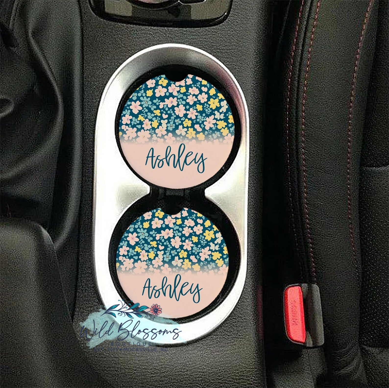 Vintage Wildflower Personalized Car Coasters - 5 Designs To Choose From